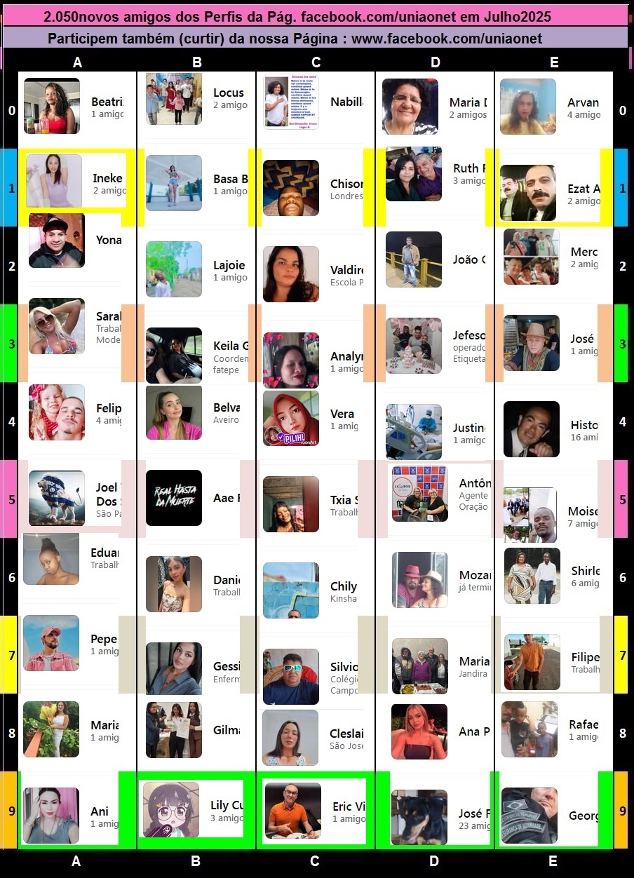 A0 Dewi A1 Dina Then A2 Cláudio Souza A3 Claudia Claudia A4 Similia Chipati A5 Al Funz A6 Kim Hyun A7 Hye Jin A8 Nanwangmo Suo A9 ?? Yao Zhen B0 Wiwin Normansyah B1 Melati Mela B2 Delvalle Garcia B3 Sinfu Bui B4 Linda Sandra B5 Peronika B6 Mary Grace B7 Shapon Kumar Sharma B8 Maulana Lana Lana B9 Xiao Vey C0 Miloi Suwandi C1 Mmah Hanif C2 Linda Ren C3 Felicidade José Augusto Augusto C4 Bianca Oliveira C5 Tarssani Ana C6 ? Lago Li C7 Jodelyn Velarde Ng C8 Yu Mee C9 Sarita MA D0 Ririn Kasah p9- D1 Agostinho Lourenço D2 Hennia Camelo p3- D3 Rubens Neres D4 Rian Aditiya D5 Cortes de Pablo Marcal D6 Mike Roody D7 Ntha Mokoenanyane D8 Salmoon Salamat D9 Winnie Pegado E0 Mariose Isabella E1 CRISTIANE RODRIGUES E2 Victoria Regina Simão Nahar E3 Vasco Joaquim Nhampoca E4 ? Khadija p6- E5 Nara Santos Costa da Silva E6 Isac Nascimento E7 Ichika Minami ? E8 Lucas Séraphine E9 Maiko Kawakami amg2024dez1000 - 29jan01fev (ñpubli)  A0 Supriyani Lam A1 Pongi Gara Dae A2 Alysia LA A3 Syafrianto Syafrianto A4 Veronica Lima Lima A5 Ana Celia da Silva A6 Xiau Yen A7 Marlene Vítor De Carvalho A8 Augusto DP Francisco Francisco A9 Mhiz Chi Blessing B0 Amanda Nathalia B1 ? Huahua B2 Beatris Souza B3 Faldi Sofian B4 Recreador Infantil Tio Feliciano B5 Za Mira B6 Janet Tam B7 Evah Slompo B8 Ilena Pascual B9 Alber Adelfic Praia Praia C0 Emillia Peri C1 Ha Rosy C2 Elaine Tristão C3 Angela Liq C4 Cláudia Da Silva Cláudia Cláudia C5 Elizabetha Gyorcsy C6 Andre Rafael Namuembe C7 Esmeralda Palacios C8 Erni Ermawati C9 Liee Ha D0 Leony Valencia D1 Nata Nasya Nata D2 Dulce Coutinho D3 Thandoka august D4 Blandini Panda Panda D5 Fi Silvi D6 Silvi Fatonah Ardianti p9- D7 Flávia Barros D8 Zizeli Ramos p3- D9 Fx trader E0 Valérie Lopez E1 Suh Vaccari E2 Jhonatan Khedira E3 Bhumika Dwimary E4 Josemario Silva Pereira p6- E5 Pedro Victorino Ricardo E6 Abilio Ramos E7 Rubens Neres E8 Grace Nonwangi E9 Jonas Sampaio amg2025jan1050 - 5e8fev (ñpubli)  A0 Carmel Graça Kalonga A1 Lie Sandy A2 Eny Silva A3 Maricho Hallazgo Amahoy A4 Nurlely Ismawati A5 Júlia Carvalho A6 Lisya Selvi Ani A7 Liviana Hie A8 Sreang Siv Er A9 Cong Na Na B0 Mia Wong B1 ? Yang Fei B2 Lie Xiang Xiang B3 Jese Line B4 ? Miao Tan B5 Cindy Duan B6 Linda Waty Hu B7 Dinni Wahyuni B8 Elias Moraes B9 Milla C0 ? Você Li C1 Amanda Harry C2 Amanda Goncalves Costa C3 Jfs Gracia Lenahj C4 Vi Via C5 Patrixiaa Castellans C6 Li Martin C7 ? Fênix Dourada C8 Eliane Muzy Reis C9 José Patrocíno Pereira D0 Shatta Daylight D1 Manuele Maria D2 Ivy Huang D3 Ana Fransiska D4 Emanuel Francisco D5 Maria Julia D6 Valeska Villar D7 Dickson Oseina D8 Cecil Violita Wu p3- D9 Hanna British E0 Datssuany Vergara E1 Tracey Birdwell E2 Yakubu M Lap p6- E3 Leandro Espírito Santo E4 Vivian Ong E5 Gabriela Garcia E6 Cinira Vicente da Silva E7 Pongi Gara Dae p9- E8 Paul David E9 Beatriz Machado amg2025jan1100  A0 Ramon Leandro Isidro A1 Michele Santus A2 Domingos Raul Martinho A3 Lek Vengsholt A4 Ary Soetjipto A5 Afung Liu A6 Ilca Da Silva Moraes A7 Silvia Silveira A8 Cleci Vargas A9 Yumi Yumi B0 Leonardo Bal Bino B1 Chia Susan B2 Susan Qi B3 Luissa Spa B4 Malay Xayasone B5 Luisa Clementina Angelica Ramos B6 Sofia Hernandez B7 Yana Yana B8 Ambutamara B9 ? Lakkana Phiman C0 Adriela Claudia Elisabeth Gea C1 Styvo Gervais C2 Santi Donti C3 Kartika C4 Niar Sitopu C5 Jefferson Moura C6 Albania YES SINGLE OK camera C7 Criaderos LaGo C8 Ermelinda Kellen C9 Jesca Philemon D0 Stefanie MitsubishiManado D1 Ropita Ulina Purba D2 ? Chen Guixiang D3 Nesy Hulu D4 Boru Pudan Simarmata D5 Menda Maura D6 Latisya Tisya D7 Adam Haruna D8 Ma Anna Rahajaan D9 Ahdi Gi E0 ? E1 Phang Sunny p3- E2 Manuel Joaquim E3 Guilherme Moreira p6- E4 Paulla Dias E5 Septiana Ria E6 Ana Celia da Silva E7 Miriam Perez p9- E8 Recreador Infantil Tio Feliciano E9 Júuh Oliveira amg2025jan1150  A0 Nguy?n Xuân H?i Ninh A1 ?. ?? R. R. A2 Clarviziuni Loventa Alexandra A3 Piyawan Mamaeva A4 Helena Silva A5 Leli Yeuyanan Ilen Yeuyanan A6 Lee Roi De A7 May Sevilla Mosuela A8 Maris Mercado A9 Letícia Alves B0 Maria Andresa Batista B1 Katarina Nurani B2 Rimsha Bilal B3 Jacqueline Jimenez B4 Evlyn Anna B5 Tina Ahsan B6 Rosely Sialana B7 Marta ArLindo Neto B8 Arunya Saewang B9 Citra Lestari Ginting C0 Claudia Patricia Gonzalez C1 Princess Queena C2 Norika Asnah Pabayo Pabayo C3 Leiyah Rèlla Hàyiel C4 Alina Herrera C5 Jensuen Silva A. Cabral C6 Balia Kargbo C7 Vltoessl Noukpo C8 Jean Pagé C9 Lee Felix D0 ? D1 Matano Jumanne D2 Yusuf Ainar D3 Vera Gomes D4 Grazi Junqueira D5 Ieda Vargas D6 Tu Kuv Hlub Hlub D7 Sonia Montes D8 Francisca Verdial D9 Priscila Justino Do Amaral p3- E1 Ahdi Gi E2 Young Queen Sharo E3 Fäz-vër Äbëgäïll E4 Tania E5 Ghina Kesuma E6 Aline Pereira p6- E0 Pib Batista Monte Serrat E7 Flávio Basan Enockvicius E8 Ras Ujima Imani p9- E9 Willian Silva Silva amg2025jan1200  A0 Raquel Oliveira A1 Aumarin Nachat A2 Victor Antonio Francisco Molene A3 Elvira A4 ? Nong Nam, gentileza A5 Missionária de Jesus A6 Sopihta Zx A7 Yasmin Anderson A8 ? Missa de Aisa Cavalquinto A9 Ermelinda Gomes B0 Magaly Manuel Nota B1 Wassana Khanboon B2 Vera Lucia da Conceição B3 Maria Gurning B4 Joanna Jan B5 Yaya Leuhena B6 Sonete De Jesus Dos Santos B7 Shinta Tata B8 Kariza C Magumane B9 Nonglak Raksopa C0 Nhanquave Mazive C1 Carlo Abdon C2 ? Baixe com coisas novas, comece de novo C3 Muhammad Steven C4 Efia Dhineberry C5 Summer Reichardt C6 Regina E. Da Silva C7 Ella Joy Combis C8 Zuleide Souza C9 Evelin Evita D0 Jean Acebes Elladora D1 Laurinda Kapitango D2 Prani Munwian D3 Fera Gustina D4 Nadri Esalvez D5 Zhangzi Zhang D6 Ti Cha D7 Aïcha NTumba D8 Lisann D9 Janjira Laoluetham E0 Jessica Jackson E1 Antonia Silver Rodriguez Claudio E2 Madaléna Magda p3-E4 Yamicela Domiguez E5 Mafo X Bou E6 Poliana Soares E7 Rodrigues Rungo p6- E3 Fäz-vër Äbëgäïll E8 Domingos Raul Martinho p9-E9 John Freddo amg2025fev1250  A0 Janjira Laoluetham A1 Jessica Jackson A2 Antonia Silver Rodriguez Claudio A3 Cary DC A4 Chai Sagitarius A5 Cirleyd