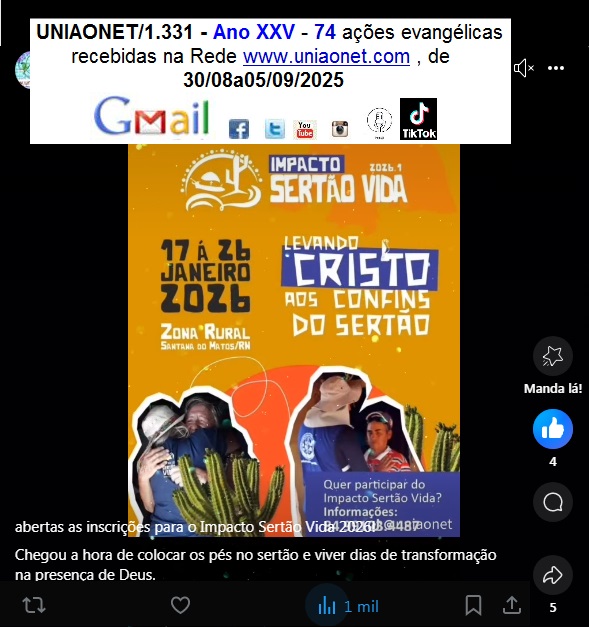 - Ano XXIV Referência ás informações recebidas na Rede www.uniaonet.com na Quadrisemana de 9/8a5/9/2025 (Íntegra dos semanários 1328a1331) |