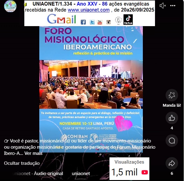 , de 06a12/09/2025  ..  .  .  O conteúdo integral está disponível no Portal , é de livre reprodução . Caso sua mensagem (ou alguma outra que voce recebe) não conste deste informativo favor nos reenviá-la . Necessitamos de estar em comunhão com o corpo de CRISTO , compartilhe conosco o que Deus tem feito no seu dia a dia , na sua igreja , no seu bairro , cidade ...  II