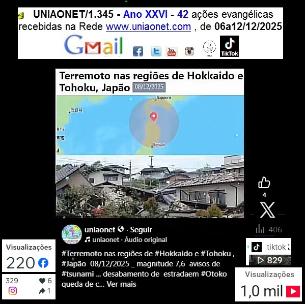 , de 06a12/12/2025O conteúdo integral está disponível no Portal , é de livre reprodução . Caso sua mensagem (ou alguma outra que voce recebe) não conste deste informativo favor nos reenviá-la . Necessitamos de estar em comunhão com o corpo de CRISTO , compartilhe conosco o que Deus tem feito no seu dia a dia , na sua igreja , no seu bairro , cidade ... II