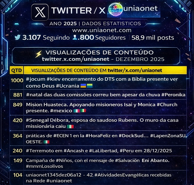, de 27a31/12/2025O conteúdo integral está disponível no Portal , é de livre reprodução . Caso sua mensagem (ou alguma outra que voce recebe) não conste deste informativo favor nos reenviá-la . Necessitamos de estar em comunhão com o corpo de CRISTO , compartilhe conosco o que Deus tem feito no seu dia a dia , na sua igreja , no seu bairro , cidade ... II